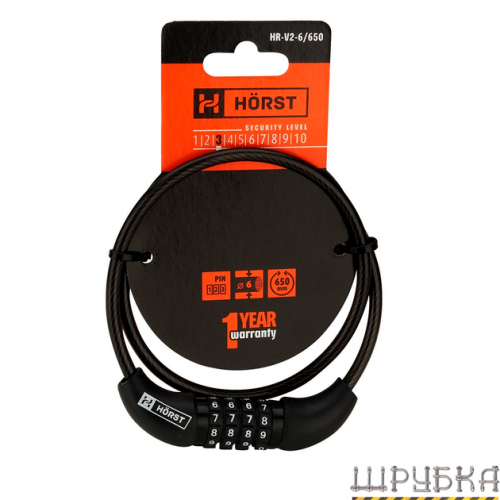 Замок велосипедний кодовий HÖRST HR-V2-6/650 - це надійне та зручне рішення для захисту вашого велосипеда від крадіжки. Замок оснащений сталевим тросом діаметром 6 мм і довжиною 650 мм, що забезпечує високий рівень стійкості до спроб перекушування, або розрізання. Трос покритий спеціальним захисним шаром, який запобігає корозії та захищає раму велосипеда від подряпин під час користування.