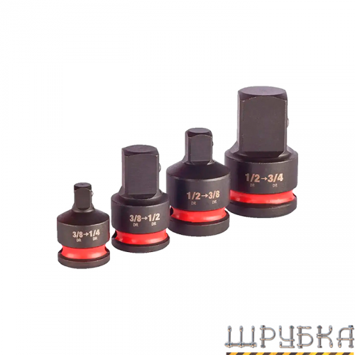 Перехідники: 3/8"-1/4"; 3/8"-1/2"; 1/2"-3/8"; 1/2"-3/4".