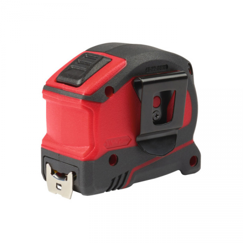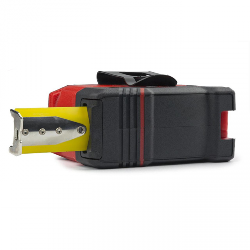 Ергономічний корпус рулетки Milwaukee виготовлений із міцного ударостійкого пластику, який забезпечує захист механізму від падінь і ударів. Гумові вставки на корпусі додають зручності у використанні та запобігають ковзанню інструменту в руці. Компактний розмір і легка вага роблять цю рулетку ідеальною для носіння у кишені або на поясі, а надійна кліпса забезпечує легке кріплення.