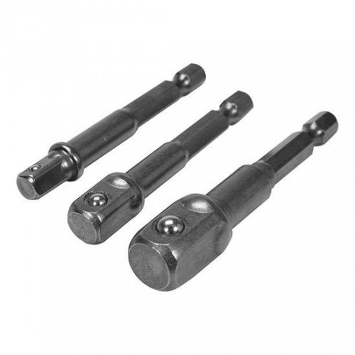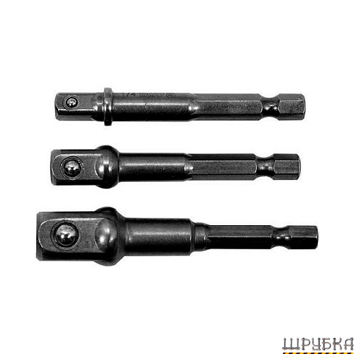 Набір містить три адаптери з квадратними посадочними місцями: 1/4" (6,3 мм) — для невеликих головок та роботи з кріпленнями малої і середньої потужності.