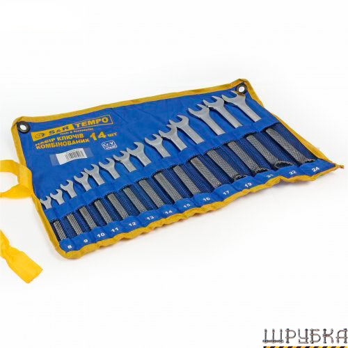 Комплект складається з 14 ключів гайкових комбінованих з розмірами від найменших до найбільш уживаних у побуті та на виробництві. Кожен ключ комбінований має дві робочі частини: ріжкову та накидну (кільцеву), що дозволяє швидко перемикатися між різними типами робіт без потреби змінювати інструмент. Така конструкція значно підвищує ефективність та зручність у роботі.