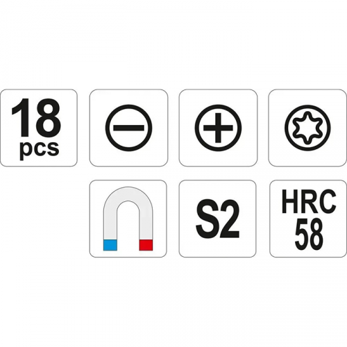 Усі елементи набору викруток YATO YT-25982 мають чітке маркування розмірів та типів наконечників, що дозволяє швидко знайти потрібний інструмент у процесі роботи. Наконечники магнітні, що полегшує фіксацію гвинтів і болтів, особливо в місцях з обмеженим доступом.