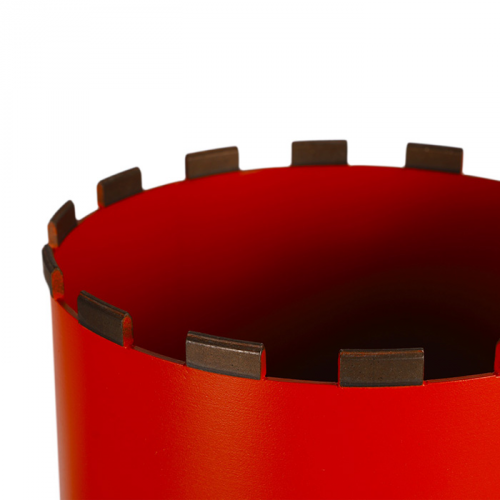 Особливість даної моделі — спеціальні сегменти серії RS6, виготовлені з надміцного алмазного зерна з додатковим зміцненням. Вони забезпечують високу швидкість проникнення в бетон з арматурою без перегрівання, сколів чи втрати геометрії отвору. Завдяки лазерному зварюванню сегментів свердло витримує значні навантаження та демонструє стабільну роботу навіть при контакті з товстим металом усередині конструкцій.