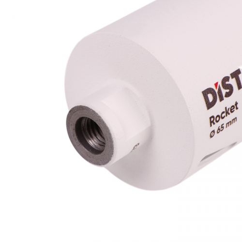 Свердло DISTAR Rocket 65 мм показує відмінні результати при сухому свердлінні керамограніту, кераміки, граніту, мармуру та інших твердих облицювальних матеріалів. Його конструкція дозволяє працювати без подачі води, що особливо зручно при внутрішніх роботах, де використання охолодження є небажаним або неможливим. Надійне кріплення алмазних сегментів забезпечує високу зносостійкість і довготривалий термін експлуатації навіть у випадку інтенсивного використання.