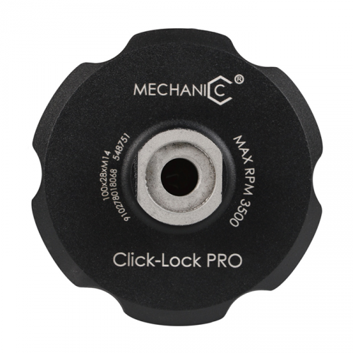 Тримач алюмінієвий магнітний для полірувальних кругів 100*M14 Click-Lock PRO DISTAR 910278018068 високоякісний професійний аксесуар, створений для зручної, швидкої та надійної фіксації полірувальних кругів діаметром 100 мм на шліфувальних машинах з різьбленням М14. Завдяки інноваційній системі Click-Lock PRO, цей тримач дозволяє здійснювати зміну абразивного круга буквально за кілька секунд — без додаткових інструментів і з максимальною зручністю.