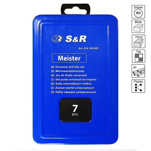 Набір свердел універсальних S&R 216100007 для свердління різних матеріалів. У цьому комплекті представлені свердла, які підходять для роботи з деревом, металом, пластиком, керамікою та навіть легким бетоном. Універсальність набору дозволяє з легкістю перемикатися між завданнями без потреби змінювати інструмент, що значно економить час і зусилля під час виконання ремонтних або монтажних робіт.