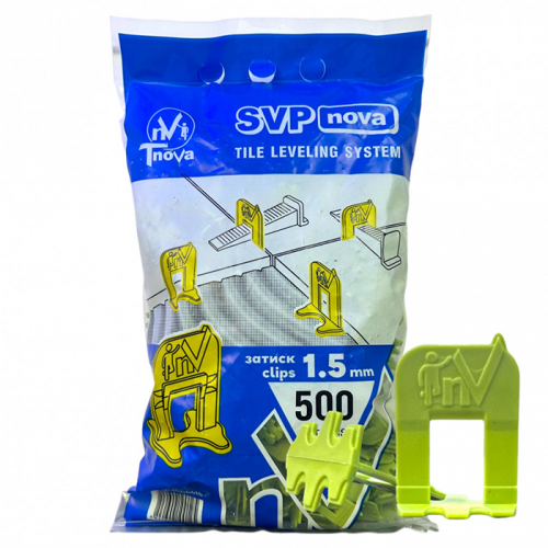 Затискач 1,5мм "SVP-Nova", 500 шт Т-Нова - ключовий елемент професійної системи вирівнювання плитки (СВП), який забезпечує точне та надійне фіксування плитки під час укладання. У комплекті міститься 500 штук затискачів, що дозволяє працювати з великими обсягами облицювальних робіт без частого поповнення запасів. Цей затискач створений для використання з клинами SVP-Nova, формуючи стабільну та ефективну систему, яка гарантує ідеально рівну поверхню без перепадів висоти між плитками.