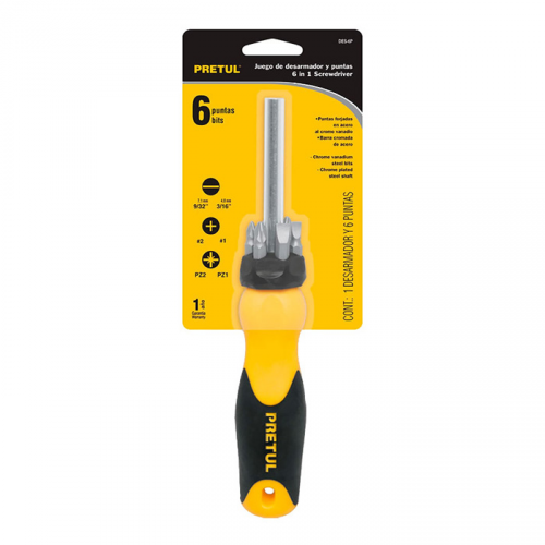 Викрутка-тримач біт Pretul DES-6P стане незамінним помічником у побуті, майстерні або під час професійних робіт. Завдяки знімним бітам різних типів, ви зможете швидко виконувати монтаж та демонтаж гвинтів і шурупів, підлаштовуючись під будь-яке кріплення. Це значно економить час і зменшує кількість інструментів, необхідних під рукою.