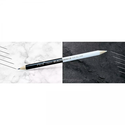 Цей біло-чорний універсальний олівець ідеально підходить для професійного використання, адже дозволяє легко переходити між різними матеріалами без потреби носити з собою кілька окремих маркерів чи олівців. Його обирають за практичність, довговічність і високу якість, яку стабільно забезпечує бренд PICA.