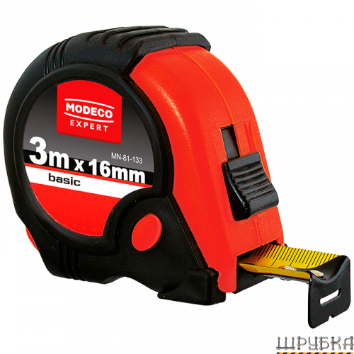 Корпус рулетки виготовлений з ударостійкого пластику, стійкого до механічних пошкоджень та інтенсивної експлуатації на будівельному майданчику. Ергономічна форма корпусу зручно лежить у руці, а прогумовані елементи забезпечують надійний хват і запобігають ковзанню під час вимірювань. Механізм змотування працює плавно та рівномірно, знижуючи знос стрічки й підвищуючи загальний ресурс інструмента.
