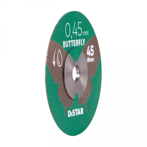 Круг алмазний вiдрiзний 1A1R 45x0,45x5,8H/3,2-3,0F Butterfly DISTAR 11143158073 для професійної порізки керамограніту. Цей алмазний круг спеціально розроблений для роботи на ручних граверах із застосуванням охолодження, що дозволяє досягати максимально чистого та контрольованого різу навіть на твердому і щільному керамограніті. Завдяки мінімальній товщині ріжучої кромки 0,45 мм круг забезпечує надтонкий пропил без сколів, тріщин і пошкодження глазурі.