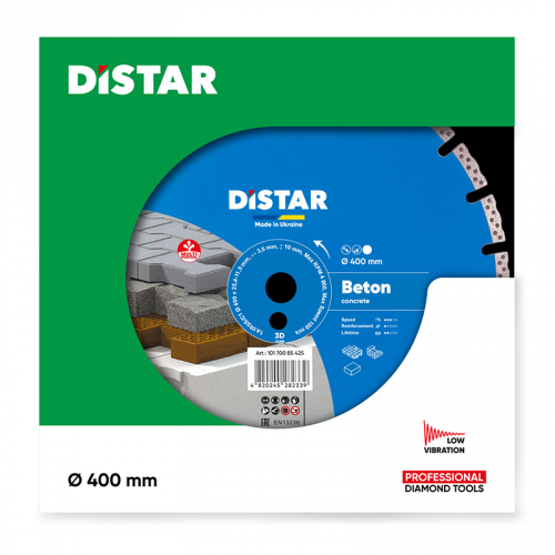 Круг алмазний вiдрiзний 1A1RSS/C1 400х3,5х10х25,4 HIT Beton DISTAR 10170085425 розроблений спеціально для ефективного різання надміцних будівельних матеріалів. Данний алмазний диск по бетону 400 мм ідеально підходить для роботи з армованим бетоном, тротуарною плиткою, залізобетонними конструкціями та іншими твердими поверхнями. Завдяки оптимальній товщині 3,5 мм і висоті алмазного шару 10 мм, цей відрізний круг DISTAR забезпечує стабільний, глибокий і швидкий різ навіть при інтенсивних навантаженнях.