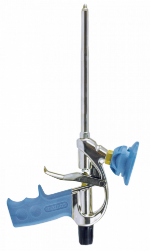 Високоякісний металевий пістолет під поліуретанову піну в аерозольній упаковці, з запатентованим компанією Soudal кріпленням. Змінне тефлонове гніздо і можливість регулювання голки продовжують час безвідмовної роботи пістолета.