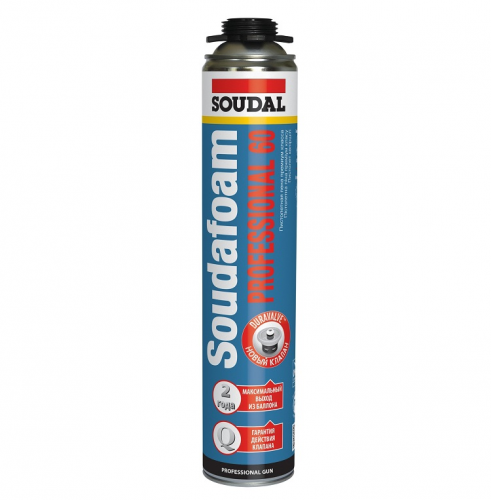 Піна монтажна SOUDAL Soudafoam Gun P 60l 750ml - однокомпонентна, саморозширювальна, готова до застосування поліуретанова піна з високим виходом. Газ-витіснювач, що не містить хлорфтор-вуглеводнів (фреон), абсолютно нешкідливий для озонового шару. Новий клапан Duravalve гарантує повну герметичність, перешкоджає витоку газу з балона, підходить до всіх стандартних пістолетів під піну. Монтажна піна з клапаном Duravalve зберігає максимальний вихід протягом усього терміну зберігання.
