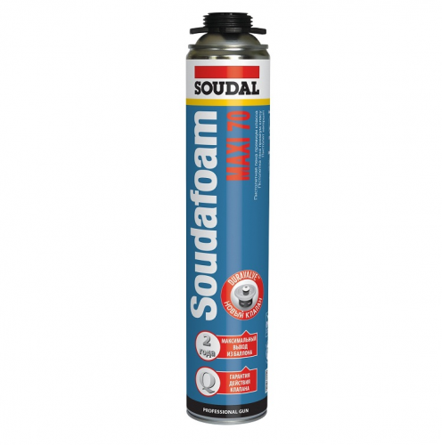 Піна монтажна Soudafoam Maxi 70 - однокомпонентна, саморозширювальна, готова до застосування поліуретанова піна з високим виходом. Газ-витіснювач, що не містить хлорфторвуглеводнів (фреон), абсолютно нешкідливий для озонового шару.