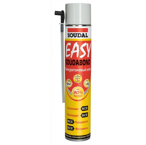 Пена-клей Soudabond Easy - готовый к применению однокомпонентный полиуретановый клей в баллоне для применения внутри и снаружи помещений. Во время применения образуется низкорасширяемая пена заполняющая и герметизирующая. Предназначена одновременно для вертикального и горизонтального склеивания. Превосходная адгезия к большинству строительных субстратов, в том числе влажным. Превосходные звуко- и термоизоляционные свойства. Окрашиваемый многими видами красок.