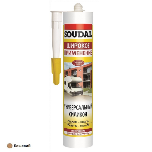 Герметик універсальний силіконовий SOUDAL 280мл бежевий - однокомпонентний еластичний герметик кислотного отвердіння. Відмінна адгезія до шорстких і гладких поверхонь, у тому числі до цегли, дерева, санітарної кераміки, скла. Не використовувати до ПВХ та акрилів, також при склінні вікон пофарбованих акриловими фарбами.