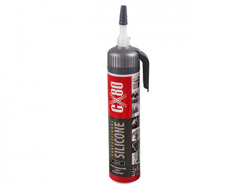Герметик силіконовий чорний CX80 Premium 210мл стійкий до дуже тривалого впливу високих і низьких температур від -65°C до +260°C, тимчасово до +380°C. Це гнучкий герметик, що швидко затвердіває, який у реакції з атмосферною вологістю утворює міцну, не усадкову, стійку до ультрафіолетового випромінювання наповнювальну масу. Ідеально ущільнює і склеює більшість поверхонь, таких як: скло, кераміка, алюміній і метал.