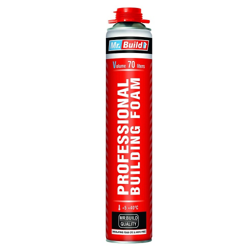 Піна монтажна Mr. Build Prof V70 850мл - однокомпонентна, вологозатверджувальна і аерозольна поліуретанова монтажна піна, що саморозширюється, з виходом до 70 літрів. Спеціальна формула із «зимовим» газом дозволяє працювати за низьких температур, до мінус -15°С. Завдяки збалансованій формулі піна не має вторинного розширення і не дає усадки, таким чином не деформує робочу поверхню. Наявність тефлонового клапана не залипає у балоні та не пропускає газ. Підходить для будь-яких стандартних пістолетів для монтажної піни. Піна не містить шкідливих газів, таких як ХФУ та ГХФУ, які можуть завдати шкоди озоновому шару.
