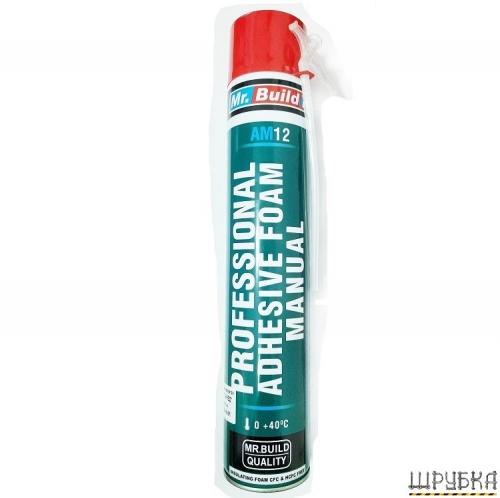 Піна-клей ручна Mr. Build AМ12 750мл - це професійна однокомпонентна, вологозатверджувана, саморозширювальна, поліуретанова клей-піна з мінімальним розширенням - готова до застосування, з трубкою-аплікатором (додається з балоном). Призначена для встановлення та монтажу панелей з полістиролу при внутрішній та зовнішній ізоляції. Піна сумісна з усіма системами зовнішньої теплоізоляції, де використовується полістирол. Балон оснащений спеціальним клапаном, що значно знижує можливість блокування виходу піни. Одного балона вистачає на 12-14м2. Піна-клей Mr. Build AМ12 не виділяє пари МДІ під час застосування завдяки своїм спеціальним блокаторам у складі та сучасній технології виробництва. Клей-піна стійка до тепла, холоду (від -50ºC до +110ºC), вологи, плісняви та старіння.