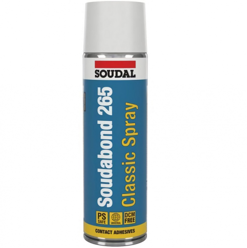 Клей контактний Soudabond 265 500мл - дуже потужний однокомпонентний поліуретановий клей для дерева. Чудова адгезія до більшості будівельних матеріалів. Клеїть також вологу деревину. Після висихання прозорий, не містить розчинників. Тип аэрозоля WEB SPRАY обеспечивает наименьшие по размеру капли клея, благодаря чему создает тонкий равномерный слой клея и позволяет приклеивать даже тонкие, рулонные, мягкие материалы, которые должны обеспечивать гладкие финишные поверхности.