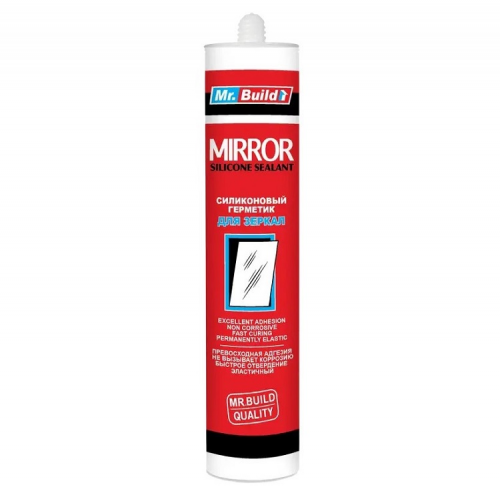 Клей-герметик Mr. Build для дзеркал - однокомпонентний нейтральний хімічно клей-герметик Mr.Build mirror на 100% силіконовій основі для приклеювання дзеркал на будь-які поверхні. Це високоефективний низькомодульний герметик, який забезпечує відмінну адгезію до більшості пористих та непористих будівельних матеріалів, таких як скло, метал, фарбований метал, пластик, дерево, бетон і т.д. Є стійким до озону, УФ-радіації та екстремальних температур.