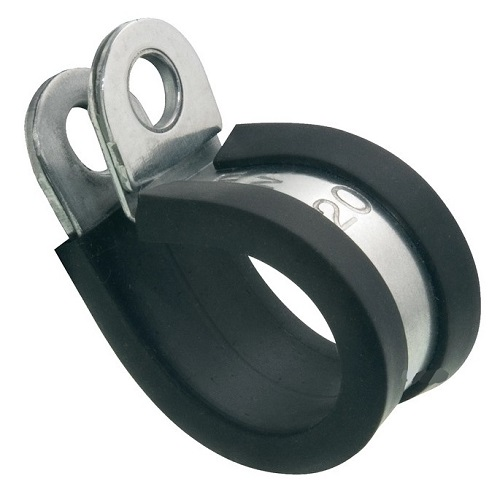 Хомут P-Clip DIN3016 25/15 MIKALOR 03004859 - сполучні затискачі з гумовим футеруванням, також відомі як «P-Clips», складаються з оцинкованої стрічки з м'якої сталі, покритої каучуком EPDM. Ця гумова підкладка забезпечує надійне кріплення в зоні застосування та запобігає потенційним збиткам від вібрації. Отвори гвинтів на обох кінцях стрічки посилені сталевими пластинами, щоб забезпечити надійне кріплення.