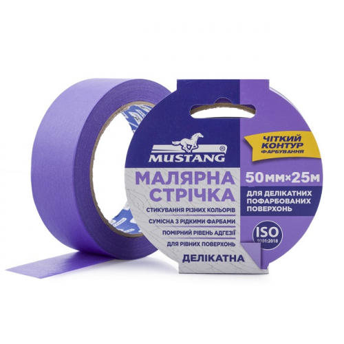 Малярна стрічка DELICATE 50мм MUSTANG WMT5025V для делікатних пофарбованих поверхонь VIOLET.