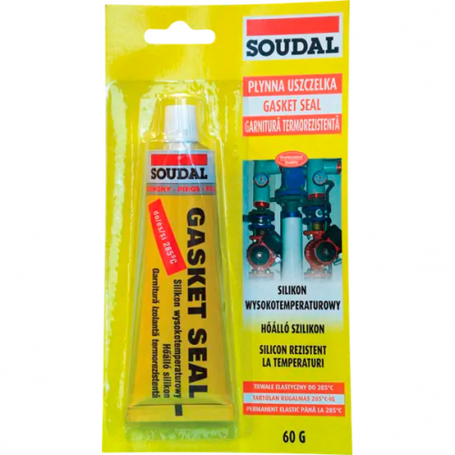 Високотемпературний силікон GASKET SEAL 60г - однокомпонентний, постійно еластичний силіконовий герметик, стійкий до дії високих температур (до +285 °C), а також до впливу палива, масел, жирів, води і незамерзаючих рідин. Замінює всякого роду прокладки з пробки, повсті, фібри, паперу, азбесту та гуми будь-яких розмірів.