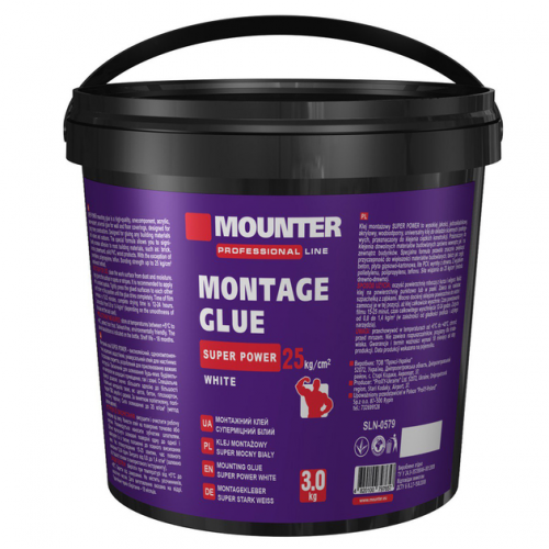 Клей "Рідкі цвяхи" 3кг "Super Power" MOUNTER SLN-0579 - суперсильний монтажний клей розроблений для приклеювання важких конструкцій. Спеціальна формула дозволяє значно збільшити адгезію до більшості будівельних матеріалів, таких як цегла, бетон, гіпсокартон, твердий ПВХ, вироби з деревини.