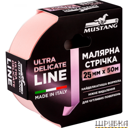Якщо вам потрібна надійна малярна стрічка для делікатних поверхонь, що не пошкоджує матеріал і забезпечує чисті краї фарби — ULTRA DELICATE LINE 25мм*50м MUSTANG ITWP2550P стане найкращим вибором для професіоналів і домашніх майстрів.