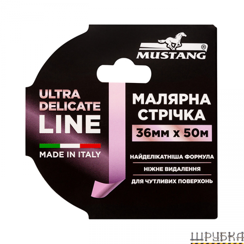 Якщо вам потрібна надійна малярна стрічка для делікатних поверхонь, що не пошкоджує матеріал і забезпечує чисті краї фарби — ULTRA DELICATE LINE 36мм*50м MUSTANG ITWP2550P стане найкращим вибором для професіоналів і домашніх майстрів.